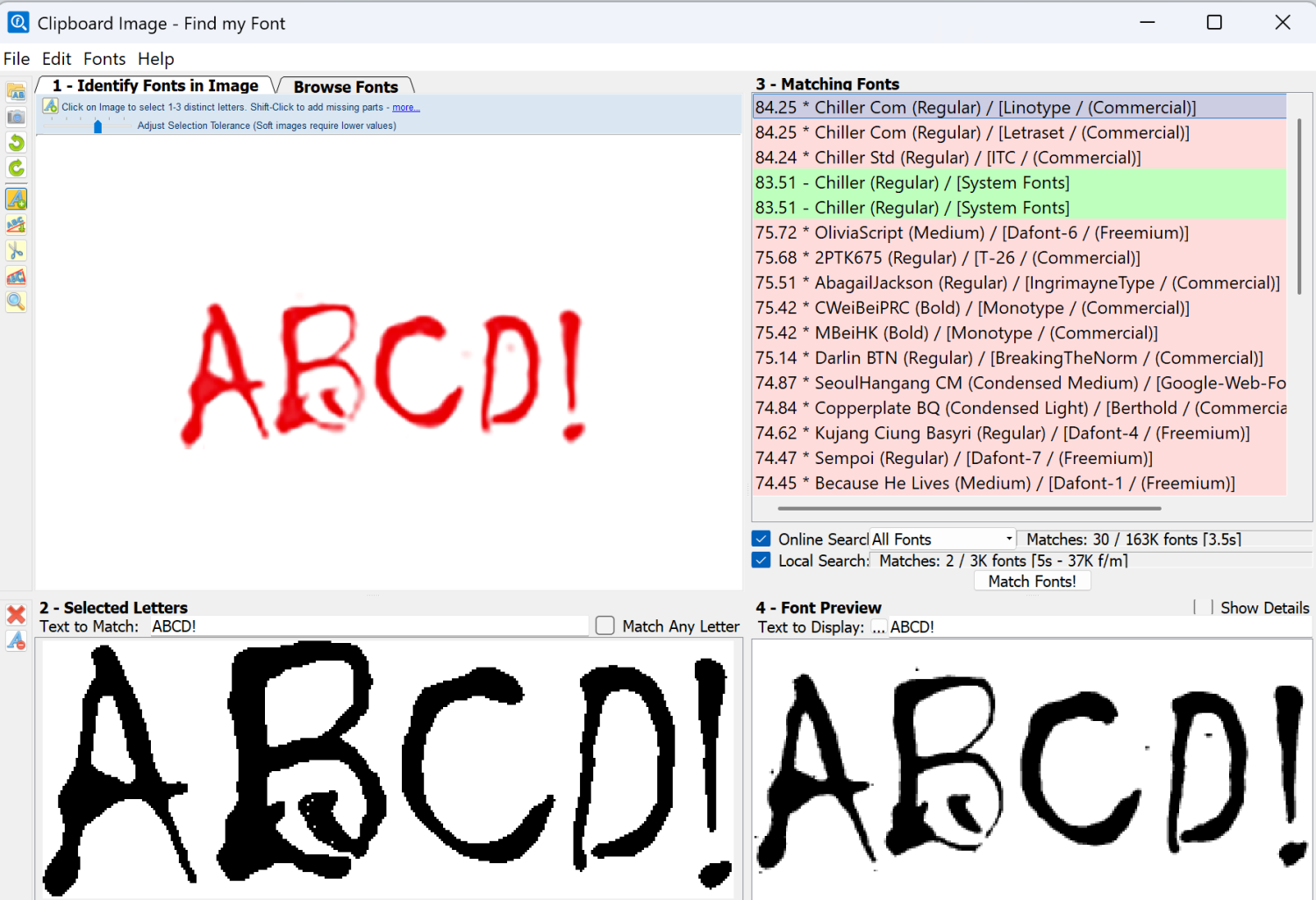 It is just the app's term for the fonts installed and residing under C:\Windows\Fonts (admittedly a bit confusingly because the term typically refers to pre-installed fonts that come with the operating system), and shows such fonts on green background color. The utility can additionally search for local fonts from the user-specified "FontSets" residing on hard drives (e.g. from Adobe Font Folio 11 or Corel Fonts) and would show such fonts with yellow background color, and online fonts (both from free and commercial resources), showing them in red. The indicated matching accuracy is relative to the letter image created by the app (I have no idea why the font I had installed, which is an old TrueType TTF from ITC, had a slightly smaller accuracy than the OpenType version by the same vendor).
