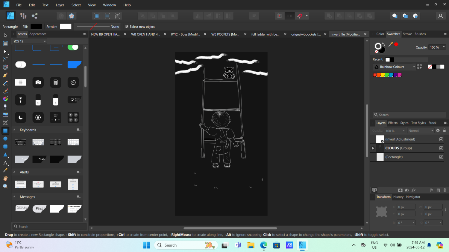 sorry about that. I realized I had a similar issue before and found the solution in a topic i still have posted. Just needed to ensure i had a perfectly white rectangle added as the bottom layer and then the invert adjustment layer at the very top. making sure the rectangle is white is very key to attaining the right shade of black that its inverted too.