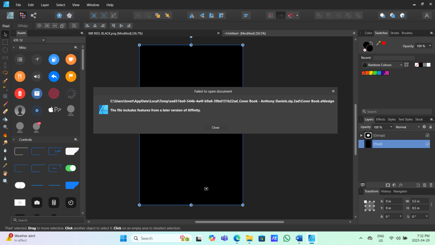 the first image is the prignal with RB color profile. then I change to CMYK and its a huge difference Affinity Designer 2025-07-11 09-42-09.mp4