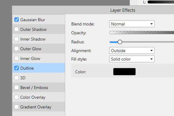 PMDesign Posted June 3, 2022 Posted June 3, 2022 Started to use the fx Outline function. First click on Outline there is only the Radius option. Clicking on any of the other Layer effects gives a full set of options, and when I return to Outline there is a full set of options. It looks like the select tick does not trigger the options. Same fault on all the other Layer effects.