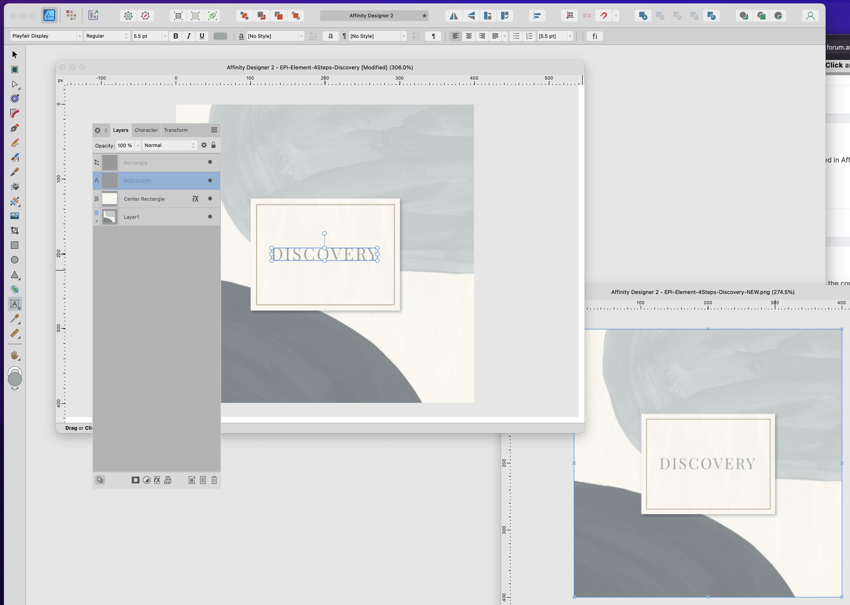 affuser9001 Posted August 1, 2023 Author Posted August 1, 2023 Thanks Walt. I'll give View Mode a try in a minute. Trying to get this uploaded to website this afternoon. Affinity Designer V2.1.1 • macOS Monterey V 12.6.7 Here are the Screenshots of AFF Designer Layers with Text Mode (Artistic) as well as how the Image Export to PNG. Playfair Display 5.5 pt